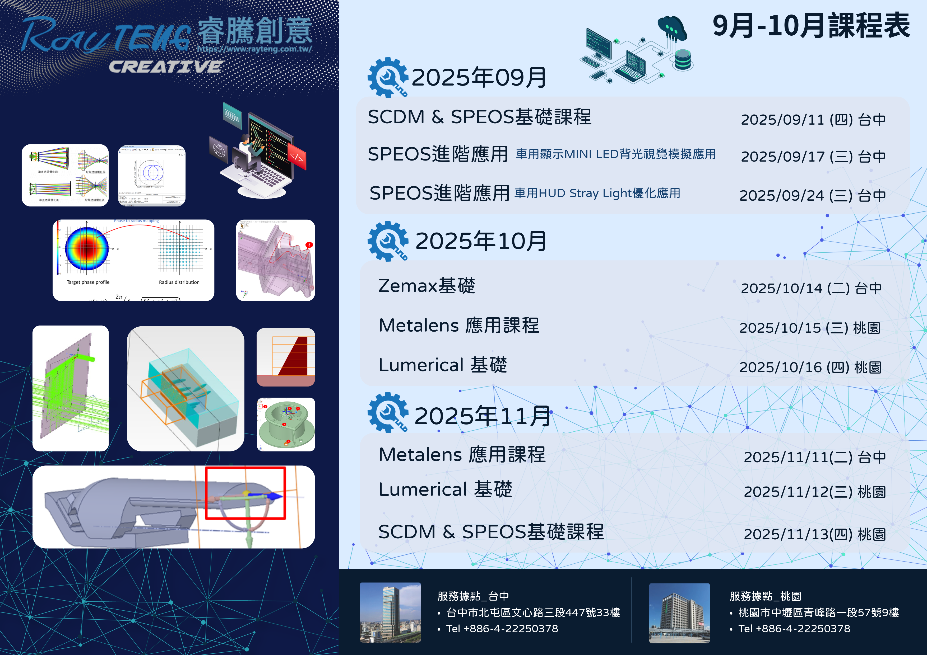 睿騰創意以超過20年產品導入經驗及經過專業培訓之光學工程師團隊領先業界,不單單講述軟體操作,透過實際案例演練引領學員有更深刻的使用體驗。